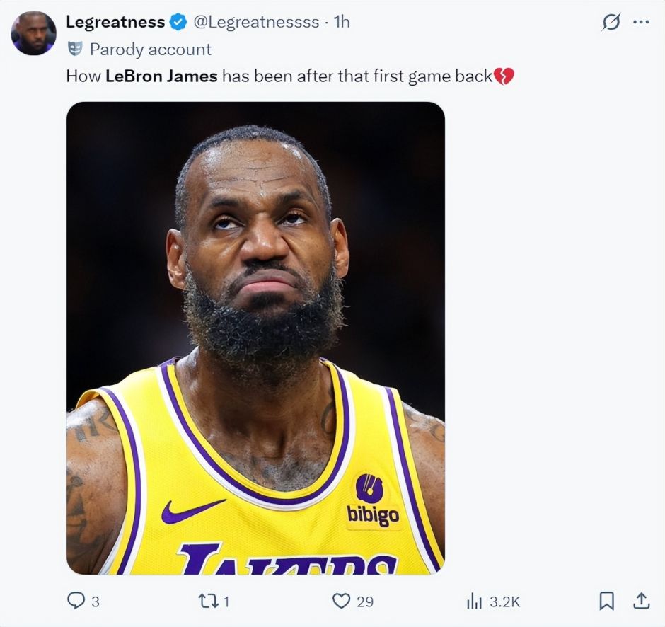湖人媒体:勒布朗在第一场比赛复出后的表现已经开始下滑,心碎了。